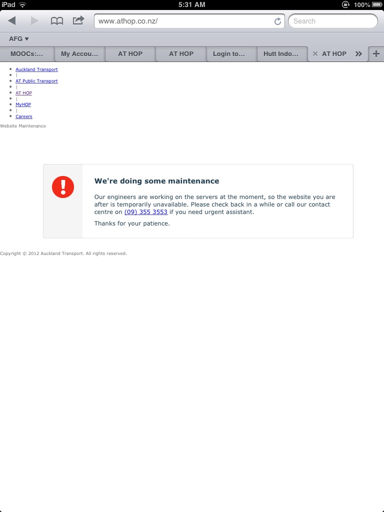 A month or so ago we a received a pamphlet telling us our local bus service – Birkenhead Transport – would be ceasing the use of 10-trip bus tickets and entering the modern era by becoming part of Auckland Transport’s ATHop card system. With the ATHop, you buy a card, load it up with money and top it up “easily” online when it gets low.
